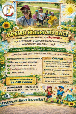 Приветствуем Вас на официальном сайте детского оздоровительно - образовательного центра «Надежда», расположенного в живописной природной зоне вблизи села Яковлево Бутурлинского округа Нижегородской области. Первых воспитанников центр принял в 1999 году и функционирует круглогодично. Оздоровительный лагерь «Надежда» предлагает организацию детского отдыха, семейные и классные заезды выходного дня, также осуществляет дополнительное образование в кружках и секциях, реализует развлекательные и обучающие программы. С детьми работает профессиональный педагогический коллектив, который проявляет высокий уровень ответственности, доброе, внимательное отношение к детям, используя индивидуальный подход к каждому ребенку.